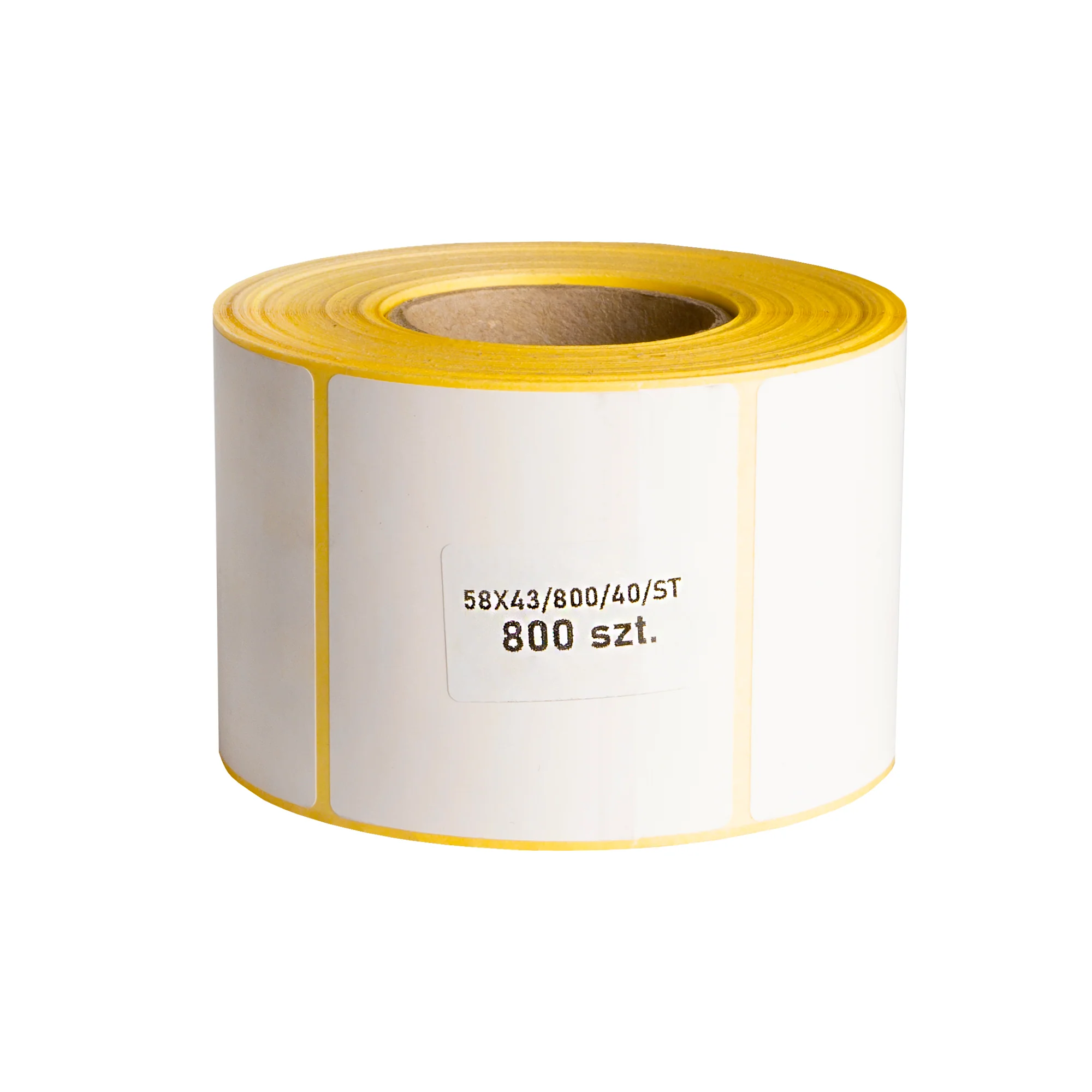 Rouleau d’étiquettes thermiques 43x58mm, 800 étiquettes par rouleau. Impression directe sans ruban, idéale pour les codes-barres, produits et logistique. Haute qualité et adhérence durable.