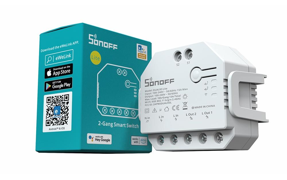 Le Sonoff DUAL R3 Lite est un interrupteur intelligent Wi-Fi à double canal permettant de commander deux appareils ou circuits séparés. Il s’intègre facilement dans une installation existante et offre des fonctions avancées via l’application eWeLink : scénarios, minuteries, automatisations et contrôle à distance. Sa conception compacte le rend adapté aux boîtes murales et aux projets de domotique. Il assure un contrôle fiable, une connectivité stable et une compatibilité avec les principaux assistants vocaux.