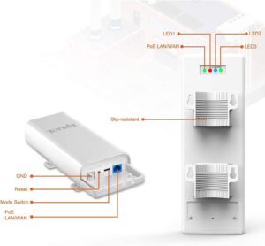 Il permet la création de liens sans fil point à point (PtP) ou point à multipoint (PtMP), assurant une transmission fiable jusqu’à 10 km dans des conditions optimales.