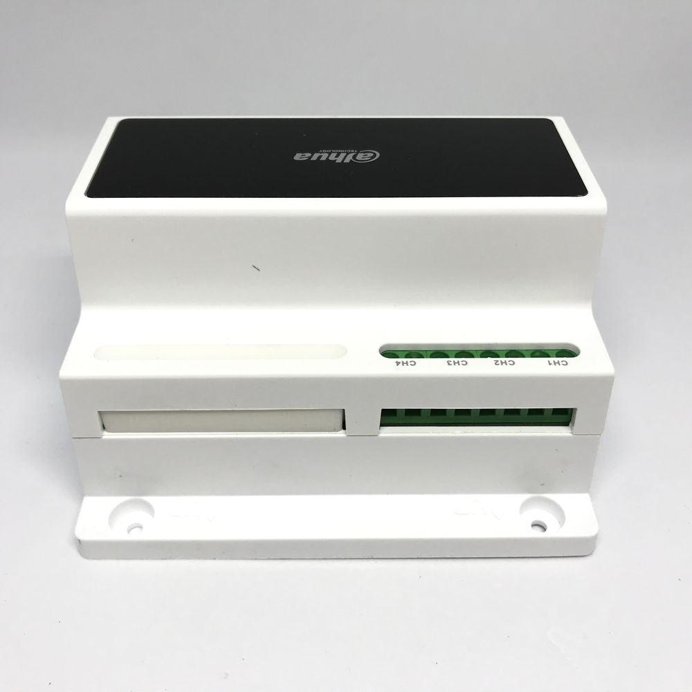 Contrôleur réseau Dahua VTNC3000A pour système interphonie hybride 2-fils/IP : 4 groupes de ports 2-fils, port RJ-45, alimentation 24 V, montage mur/rail — distribution signal et alimentation simplifiée.